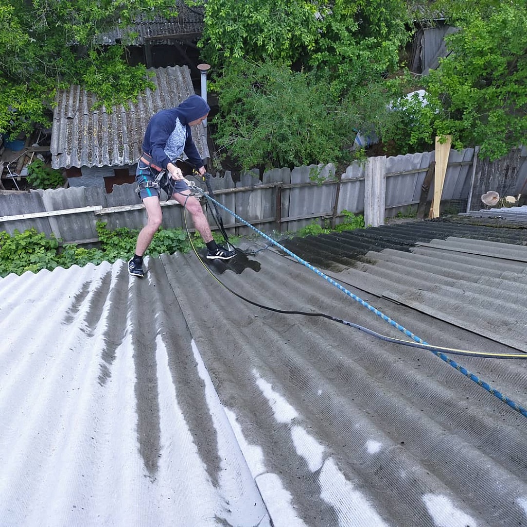 • Мойка крыши прибором высокого давления. В зимний и осенний период на многих жестких крышах, включая желоба, скапливается грязь и листья. Перед покраской крыши дома их нужно обязательно убрать. Если листьев много, нужно предварительно взять мешки для мусора.