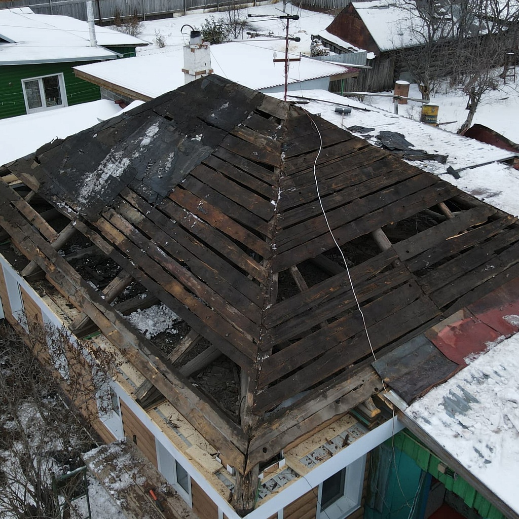 Если более 40 % приходится на повреждения крыши, в таком случае нужно проводить капитальный ремонт кровельного покрытия. Это может быть частичная или полная замена кровли, вплоть до создания крыши заново.