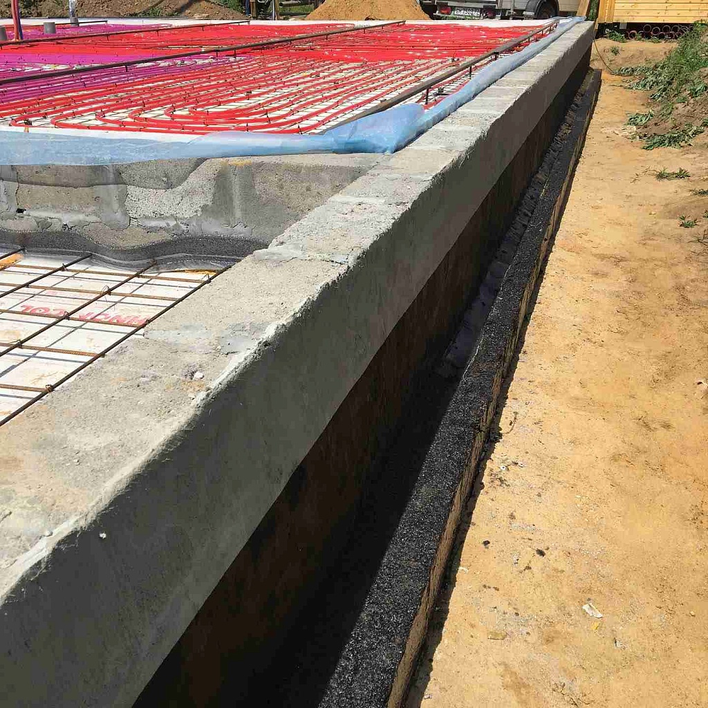 Гидроизоляцию плитного фундамента лучше осуществлять с использованием битумно-полимерных материалов. Также допустимо использование гидроизоляции рулонного типа.